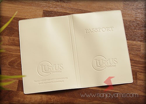 Cover paspor bahan biru dongker cetak poly silver