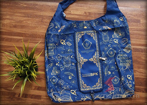 Goodie Bag Lipat Ukuran Tebuka :55 x 38 cmUkuran Terlipat :14 x 11 cm Bahan :Tas Nylon