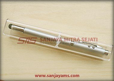 Pointer ini memiliki 5 fungsi. Bisa sebagai pen, laser pointer, senter dan stylush. Serta bagian badan pointer bisa dibuat lebih panjang.