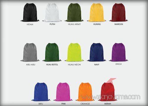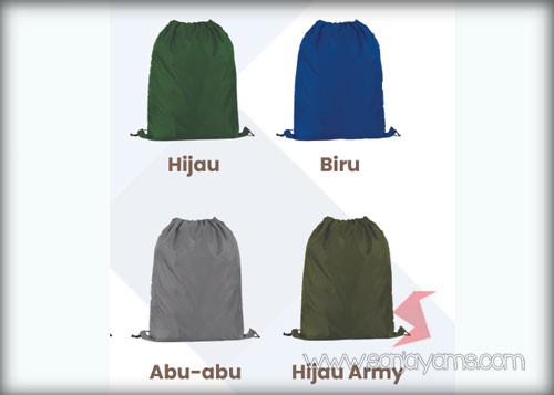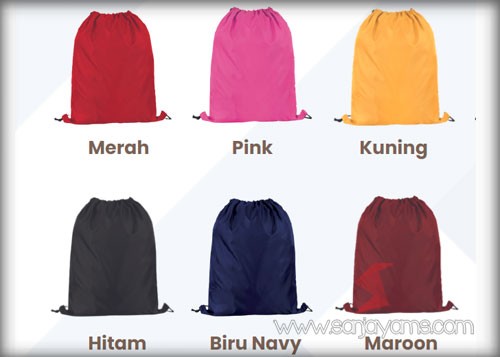 Material : TaslanMaterial Tali : Tali Kur HitamTersedia 14 pilihan warna : Merah, Pink, Kuning, Hijau, Biru, Hitam, Biru Navy, Maroon, Abu-Abu, Hijau Armi, Ungu, Orange Neon, Hijau Neon, dan PutihUkuran : 32 x 43 cmToleransi ukuran jahit ± 1 cm