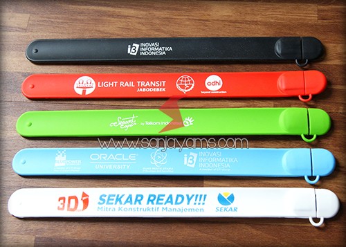 Kami menjual souvenir USB Flashdisk Gelang Promosi dengan kualitas terbaik dan Garansi 1 Tahun. Flashdisk gelang slap on / snap on Dapat mudah otomatis menggulung ke tangan apabila kita menekan sedikit ke pergelangan tangan.