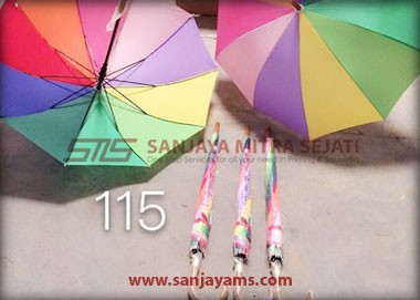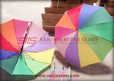 Payung model pelangi. Memiliki 10 variasi warna di setiap sisi payung.