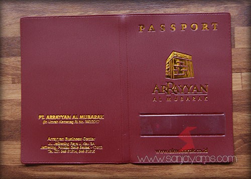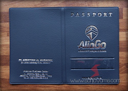 Cover paspor bahan biru dongker cetak poly silver