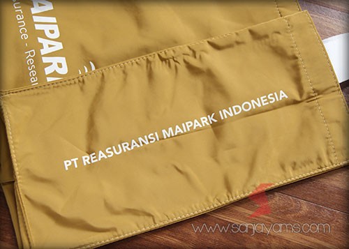 Goodie Bag berbahan Taslan anti air serta ringan Cocok untuk sarana promosi maupun souvenir kantor Bahan lapisan tas double, sehingga terlihat premium Ukuran : 30 x 40 + 10 cm