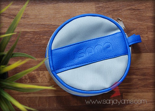 Pouch dengan model seperti koin berbahan dasar kanvas dengan kombinasi kulitUkuran diameter : 10.5 cm