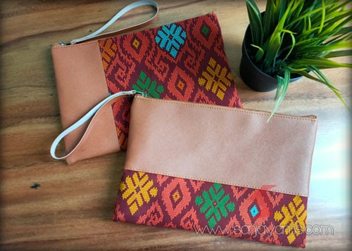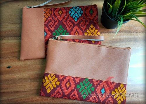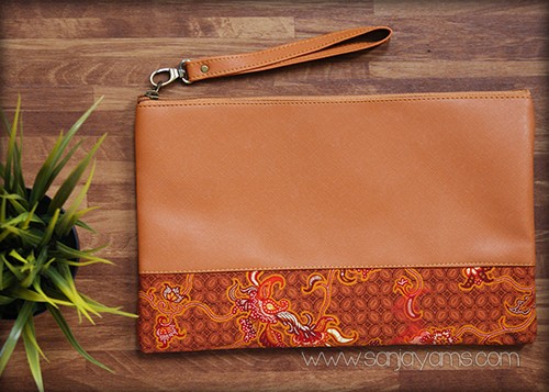 Pouch kulit kombinasi batik