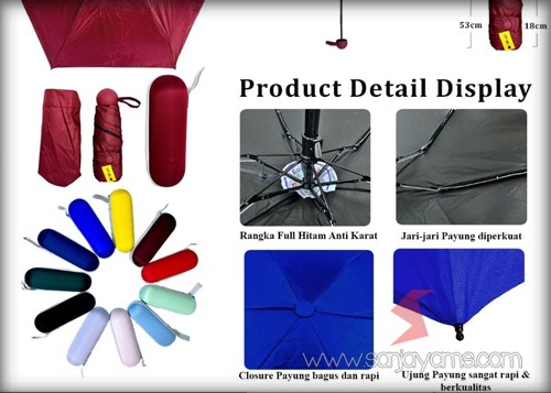 Saat dilipat panjang payung hanya 18 cm.
