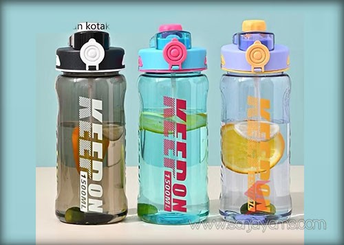 Tumbler plastik dengan model terbaruTerdapat 3 pilihan warna : Hitam, Biru, dan Ungu Kapasitas : 1.500 ml