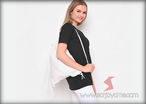 Material : BlacuMaterial Tali : Tali Kur PutihUkuran : 32 x 43 cmToleransi ukuran jahit ± 1 cm
