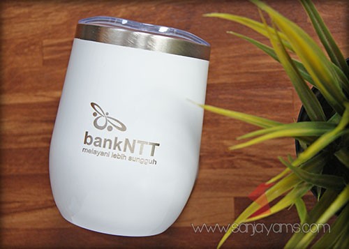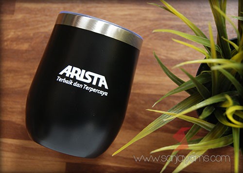 Mug stainless dengan design yang minimalis dan unik, dapat dijadikan sebagai souvenir perusahaan Anda.