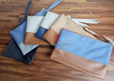 Pouch Jeans dengan variasi warna bahan dan kulit