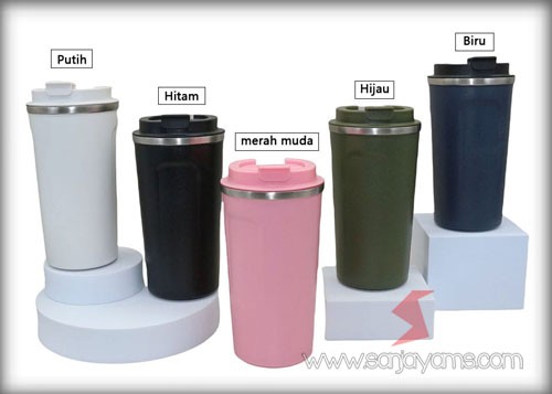 Tumbler dengan model terbaru Kapasitas : 500 mlKapasitas : 350 ml Terdapat 5 pilihan Warna : Hitam, Putih, Biru, Pink, dan Hijau Sage
