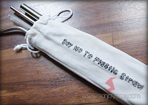 Satu set : pouch + 3 sedotan + 1 sikat
