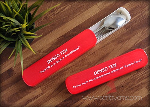 Satu set : Box + 1 sendok + 1 garpu + 1 Sumpit