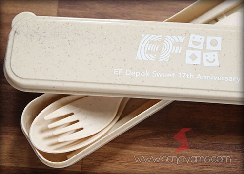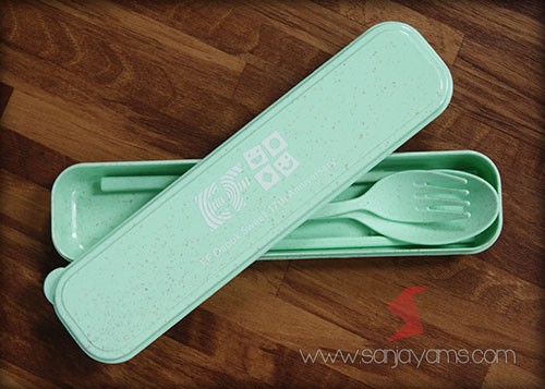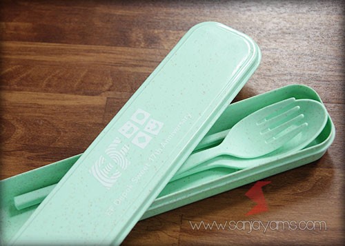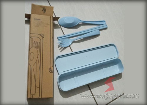 Sendok set yang terbuat dari bahan dasar serat jerami