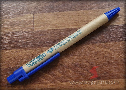 Pulpen ini cocok untuk promosi Anda yang berkonsep recycle (daur ulang). Terdiri dari 5 warna (Hitam, Merah, Biru, Hijau dan Orange)
